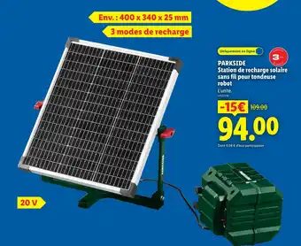 Y a-t-il une promotion sur Parkside station de recharge solaire sans fil pour tondeuse robot la semaine prochaine chez Lidl ?