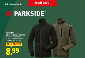 Actuellement en offre chez Lidl : PARKSIDE Veste en polaire homme ✅ Valable du 29-01 au 4-02.