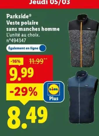 PARKSIDE Veste polaire sans manches homme offres et promotions en ligne chez Lidl