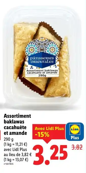 Pâtisseries orientales assortiment baklawas cacahuète et amande offres et promotions en ligne chez Lidl