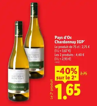 En plus de l'offre Pays d'Oc Chardonnay IGP, Lidl propose une large gamme de produits. Consultez le Catalogue Lidl hebdomadaire pour découvrir les meilleures offres et promotions. En plus de Pays d'Oc Chardonnay IGP, il y a aussi : IGP PAYS D'OC CHARDONNAY BLANC, Chevalier de fauvert pays d'oc chardonnay igp & This life ∆ igp pays d'oc chardonnay blanc.