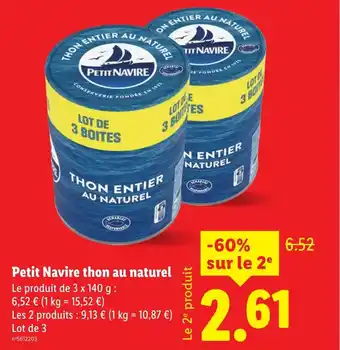 Offre PETIT NAVIRE thon au naturel chez Lidl