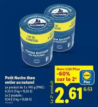 Offre Petit navire - thon entier au naturel chez Lidl