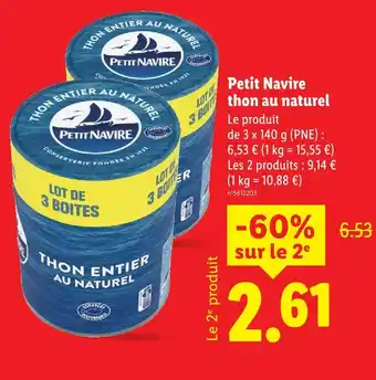 Petit navire thon entier au naturel : offres et promos Lidl à découvrir
