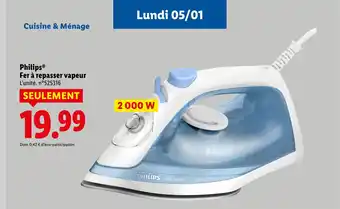Actuellement en offre chez Lidl : PHILIPS Fer à repasser vapeur ✅ Valable du 3-01 au 7-01.