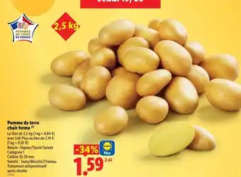 En plus de l'offre Pomme de terre chair ferme, Lidl propose une large gamme de produits. Consultez le Catalogue Lidl hebdomadaire pour découvrir les meilleures offres et promotions. En plus de Pomme de terre chair ferme, il y a aussi : Pomme de terre de consommation a chair ferme u, Pomme de terre de consommation à chair ferme blanche & U pomme de terre de consommation à chair ferme.