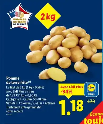 Actuellement, Pomme de terre frite est en promotion chez Lidl. Toutes les informations utiles comme le prix, les conditions et la durée de validité sont affichées sur cette page. Consultez également les promotions similaires pour Pomme de terre frite, afin de faire le meilleur choix. La promo Pomme de terre frite est valable du 05-02-2026 au 11-02-2026. Si elle est expirée, regardez les autres offres équivalentes. Vous pouvez aussi suivre cette catégorie de produit pour être alerté lorsqu’une nouvelle promotion Pomme de terre frite apparaît chez Lidl.Questions fréquemment posées au sujet de Pomme de terre frite