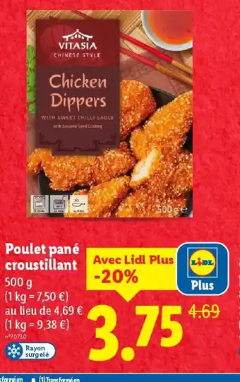 En plus de l'offre Poulet pané croustillant, Lidl propose une large gamme de produits. Consultez le Catalogue Lidl hebdomadaire pour découvrir les meilleures offres et promotions. En plus de Poulet pané croustillant, il y a aussi : Poulet pané croustillant, Poulet pané croustillant & Vitasia poulet pané croustillant.