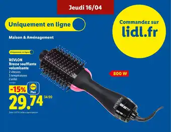 Actuellement en offre chez Lidl : REVLON Brosse soufflante volumisante ✅ Valable du 16-04 au 22-04.
