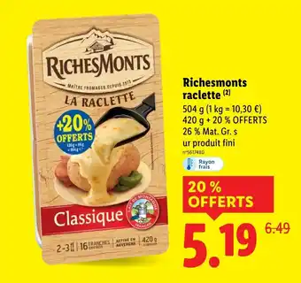 Actuellement en offre chez Lidl : RICHESMONTS raclette ✅ Valable du 12-02 au 18-02.