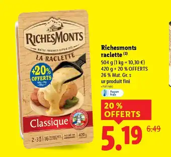 Actuellement en offre chez Lidl : RICHESMONTS raclette ✅ Valable du 12-02 au 18-02.