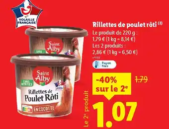 Actuellement, Rillettes de poulet rôti est en promotion chez Lidl. Toutes les informations utiles comme le prix, les conditions et la durée de validité sont affichées sur cette page. Consultez également les promotions similaires pour Rillettes de poulet rôti, afin de faire le meilleur choix. La promo Rillettes de poulet rôti est valable du 05-02-2026 au 11-02-2026. Si elle est expirée, regardez les autres offres équivalentes. Vous pouvez aussi suivre cette catégorie de produit pour être alerté lorsqu’une nouvelle promotion Rillettes de poulet rôti apparaît chez Lidl.Questions fréquemment posées au sujet de Rillettes de poulet rôti