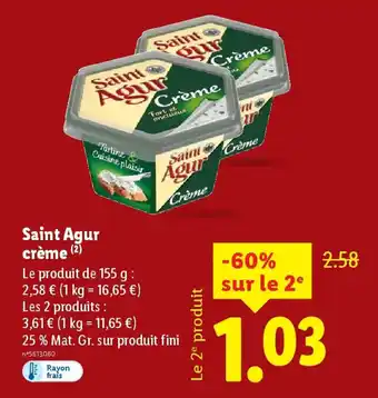 Actuellement en offre chez Lidl : SAINT AGUR crème ✅ Valable du 5-02 au 11-02.