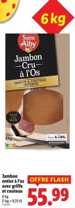 Offre Saint alby jambon entier à l'os avec griffe et couteau chez Lidl