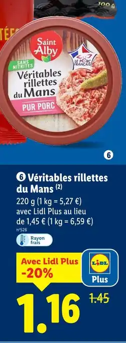 Offre Saint alby véritables rillettes du mans chez Lidl