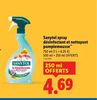 Actuellement en offre chez Lidl : SANYTOL spray désinfectant et nettoyant pamplemouss ✅ Valable du 22-01 au 28-01.