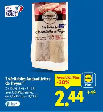 Actuellement en offre chez Lidl : Saveurs de nos régions 2 véritables andouillettes de troyes ✅ Valable du 15-01 au 21-01.