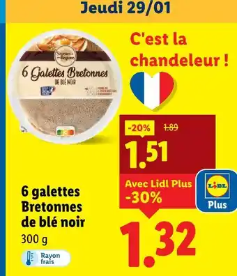 Actuellement en offre chez Lidl : Saveurs de nos régions 6 galettes bretonnes de blé noir ✅ Valable du 29-01 au 4-02.