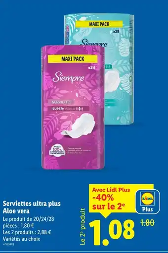 Actuellement en offre chez Lidl : Siempre serviettes ultra plus ✅ Valable du 8-01 au 14-01.