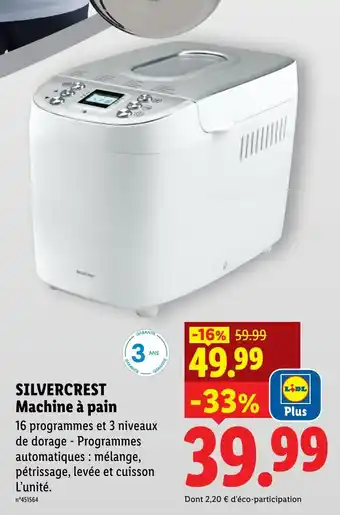 Actuellement en offre chez Lidl : SILVERCREST Machine à pain ✅ Valable du 16-04 au 22-04.