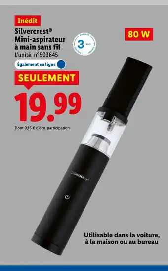 Actuellement en offre chez Lidl : SILVERCREST Mini-aspirateur à main sans fil ✅ Valable du 12-02 au 18-02.