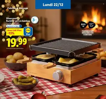 Actuellement en offre chez Lidl : SILVERCREST Raclette-gril en bambou ✅ Valable du 22-12 au 27-12.