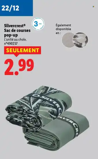 Actuellement en offre chez Lidl : SILVERCREST Sac de courses pop-up ✅ Valable du 22-12 au 27-12.