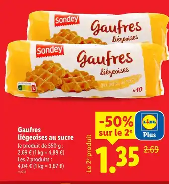 Actuellement en offre chez Lidl : Sondey gaufres liégeoises au sucre ✅ Valable du 26-02 au 4-03.