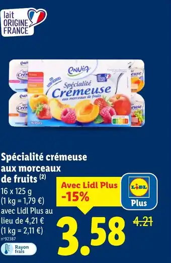 Actuellement en offre chez Lidl : Spécialité crémeuse aux morceaux de fruits ✅ Valable du 3-01 au 7-01.