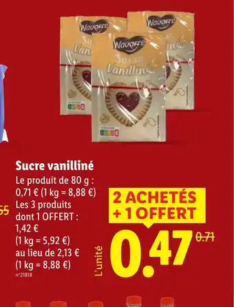 Le prix de l'offre Sucre vanilliné se trouve également en haut de la page, ainsi que la date à laquelle l'offre est disponible. Vous pouvez également vérifier les prix dans le Catalogue Lidl actuel ou sur le site Internet de Lidl. Les offres vous permettent d'acheter les produits Lidl au prix le plus bas.