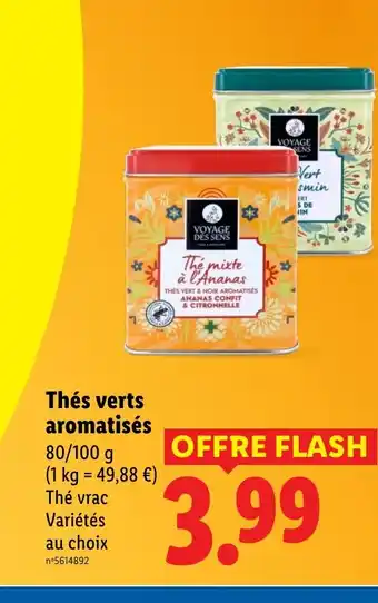 En plus de l'offre Thés verts aromatisés, Lidl propose une large gamme de produits. Consultez le Catalogue Lidl hebdomadaire pour découvrir les meilleures offres et promotions. En plus de Thés verts aromatisés, il y a aussi : Voyage des sens thés verts aromatisés, Ferments pour yaourts aromatisés & Les cafés en grains aromatisés.