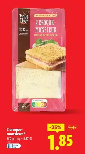 Actuellement en offre chez Lidl : Toque du chef - croque-monsieur ✅ Valable du 29-01 au 4-02.