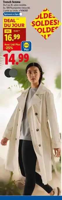 Actuellement en offre chez Lidl : Trench femme ✅ Valable du 12-01 au 15-01.
