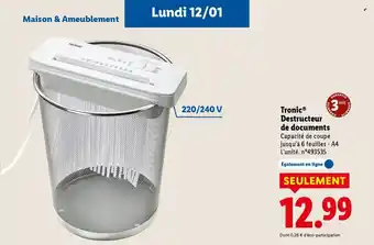 TRONIC Destructeur de documents : offres et promos Lidl à découvrir