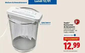 TRONIC Destructeur de documents : offres et promos Lidl à découvrir