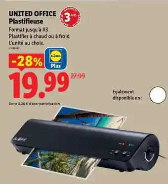 Actuellement en offre chez Lidl : UNITED OFFICE Plastifieuse ✅ Valable du 30-04 au 6-05.