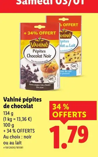 Offre Vahiné pépites de chocolat noir chez Lidl