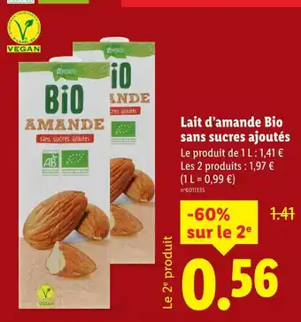 Offre Vemondo lait d’amande bio sans sucres ajoutés chez Lidl
