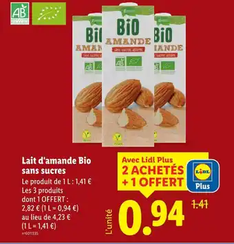 Actuellement en offre chez Lidl : Vemondo lait d'amande bio sans sucres ✅ Valable du 5-02 au 11-02.