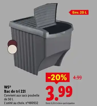 Offre W5 bac de tri 22l chez Lidl