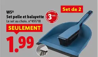Actuellement, W5 Set pelle et balayette est en promotion chez Lidl. Toutes les informations utiles comme le prix, les conditions et la durée de validité sont affichées sur cette page. Consultez également les promotions similaires pour W5 Set pelle et balayette, afin de faire le meilleur choix. La promo W5 Set pelle et balayette est valable du 12-02-2026 au 18-02-2026. Si elle est expirée, regardez les autres offres équivalentes. Vous pouvez aussi suivre cette catégorie de produit pour être alerté lorsqu’une nouvelle promotion W5 Set pelle et balayette apparaît chez Lidl.Questions fréquemment posées au sujet de W5 Set pelle et balayette