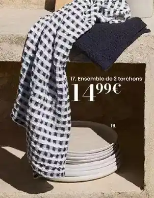 Actuellement en offre chez Maisons du Monde : Ensemble de 2 torchons ✅ Valable du 1-03 au 31-08.
