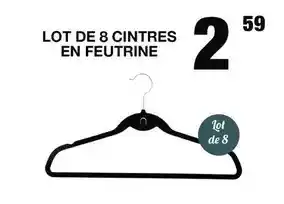 Actuellement en offre chez Marché aux Affaires : Lot de 8 cintres en feutrine ✅ Valable du 6-01 au 17-01.