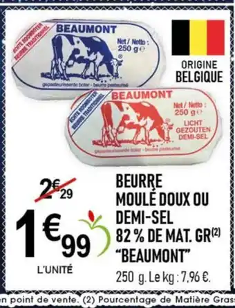 BEAUMONT Beurre moulé doux ou demi-sel 82% de mat. gr 250 g