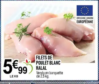 Filets de poulet blanc halal bénéficie actuellement d'une réduction chez marché frais Géant. Vous trouverez ici toutes les infos utiles sur les prix, la durée de validité et les conditions de l’offre. Pensez à consulter aussi d'autres offres et promotions similaires pour Filets de poulet blanc halal afin d’acheter toujours au bon prix. La promo Filets de poulet blanc halal est valable du 06-02-2026 au 22-02-2026. Offre terminée ? Pas de souci. D'autres offres sur ces produits sont peut-être déjà disponibles. Vous pouvez suivre cette catégorie de produits pour rester informé en cas de nouvelle promotion Filets de poulet blanc halal chez marché frais Géant. En comparant les offres, vous êtes sûr d’acheter au prix le plus bas possible.Questions fréquemment posées au sujet de Filets de poulet blanc halal