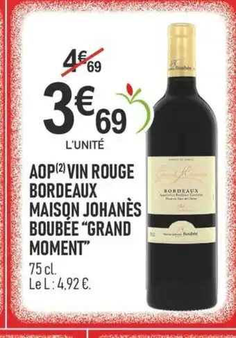 GRAND MOMENT Aop vin rouge bordeaux maison johanès boubée : offres et promos marché frais Géant à découvrir