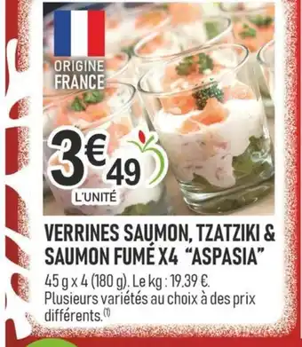 Verrines saumon, tzatziki & saumon fumé x4 aspasia offres et promotions en ligne chez marché frais Géant