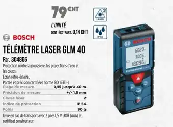 Actuellement en offre chez Master Pro : BOSCH Télémètre laser glm 40 ✅ Valable du 10-09 au 31-12.