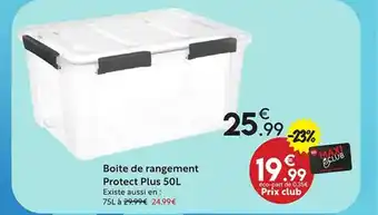 En plus de l'offre Boite de rangement Protect Plus, Maxi Bazar propose une large gamme de produits. Consultez le Catalogue Maxi Bazar hebdomadaire pour découvrir les meilleures offres et promotions. En plus de Boite de rangement Protect Plus, il y a aussi : Boite de rangement protect plus 50l, Boite de rangement & Boite de rangement.