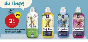 L'offre est disponible dans plusieurs magasins, vérifiez tous les produits pour obtenir le Cajoline adoucissant le moins cher. Si vous souhaitez savoir si l'article est en vente avec une plus grosse remise dans un autre magasin, consultez la catégorie 'Bazar et Déstockage'. Ces offres pourraient aussi vous intéresser : CAJOLINE Adoucissant concentré, Cajoline assouplissant & CAJOLINE Assouplissant.